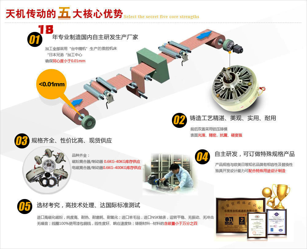 東莞市臺(tái)機(jī)減速機(jī)有限公司(天機(jī)傳動(dòng))成立于2005年,專(zhuān)注于研發(fā)生產(chǎn)銷(xiāo)售磁粉離合器、磁粉制動(dòng)器及張力控制器等張力控制系統(tǒng)組件及干式電磁離合器、電磁制動(dòng)器、離合剎車(chē)減速機(jī)、氣脹軸等傳動(dòng)件。產(chǎn)品輻射全國(guó)各地,如廣州、深圳、溫州、上海、北京、蘇州、無(wú)錫、常州、南通、合肥、廈門(mén)、寧波、天津等地區(qū)。