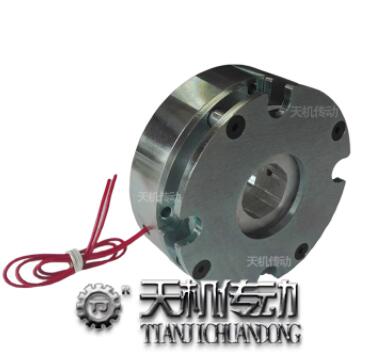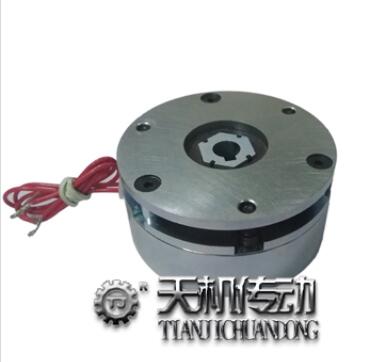 天機傳動廠家生產(chǎn)的電磁斷電剎車器也稱失電制動器,是由磁軛、勵磁線圈、彈簧、制動盤、銜鐵、花鍵套、安裝鏍釘?shù)冉M成,制動器安裝在設備的法蘭盤(或電動機)的后端伸,傳動軸與花鍵套與制動盤聯(lián)結(jié)。  勵磁線圈接通額定電壓(DC)時,電磁力吸合銜鐵,使銜鐵與制動盤脫離(釋放),這時傳動軸帶著制動盤正常運轉(zhuǎn)或啟動,當傳動系統(tǒng)分離或斷電時,制動器也同時斷電,此時彈簧施壓于銜鐵,迫使制動盤與銜鐵及法蘭盤之間產(chǎn)生摩擦力矩,使傳動軸快速停轉(zhuǎn)。